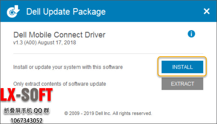 3、在下载的文件中找到并运行“Dell-Mobile-Connect-Driver_6P0DG_WIN_1.3_A00.EXE”,点击INSTALL进行安装
