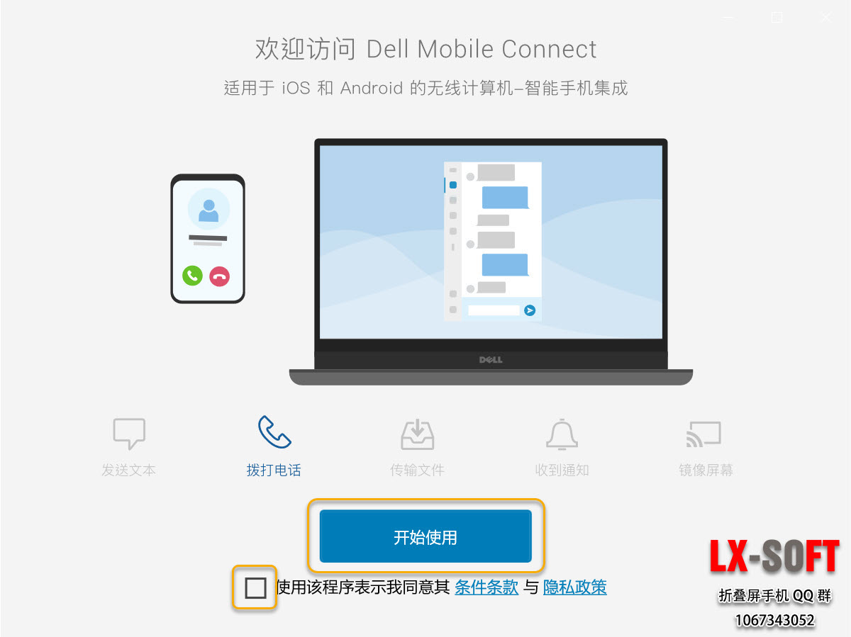 8、更新完成后,从开始菜单中找到并打开Dell Mobile Connect,选中对话框,然后点击开始使用