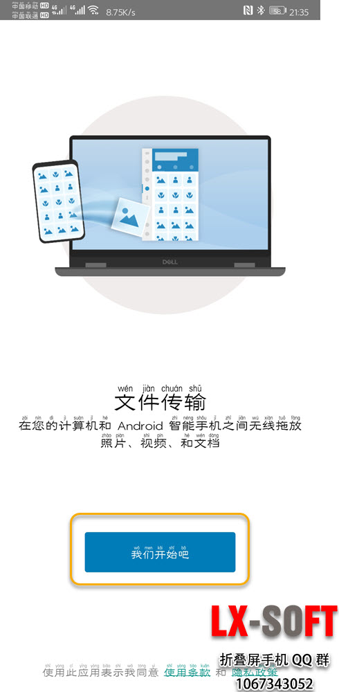 11、手机安装好Dell Mobile Connect后将其打开,点击我们开始吧