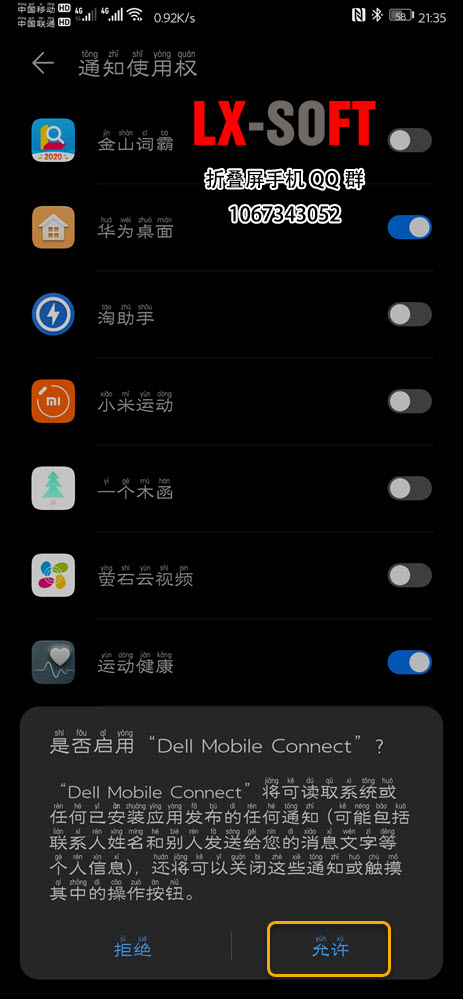 DELL的这个东西叫做Mobile Connect,主要的功能是在电脑上接收、阅读以及操作手机的电话、信息等等内容,甚至还包括微信,当然,更少不了屏幕操作,你可以直接在电脑屏幕上通过触屏或者键盘+鼠标来操作你的手机,这样,就不需要在你关注着电脑的时候还要分神来掏手机看了。