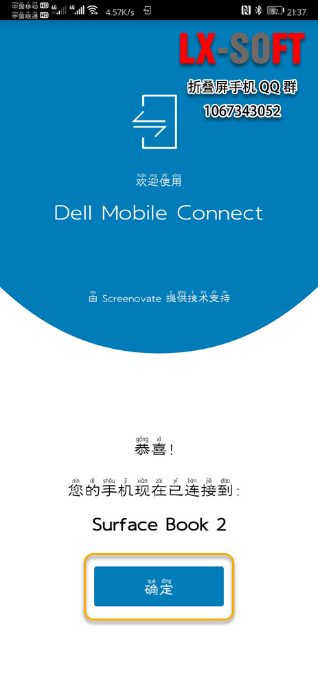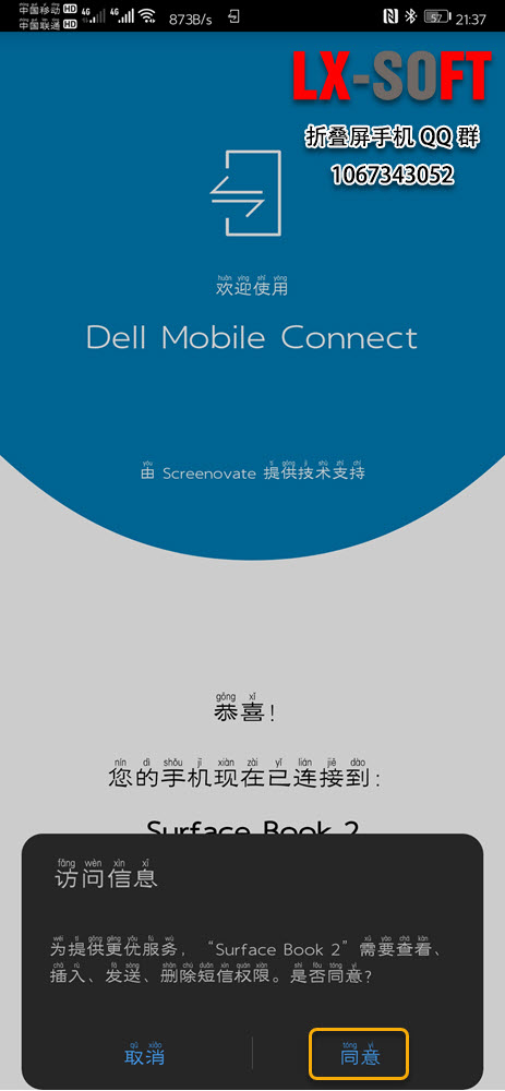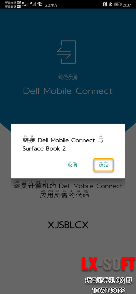18、手机会弹出Dell Mobile Connect的连接确认请求,点击确定