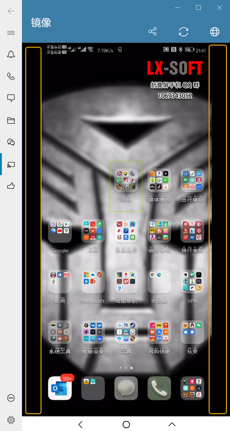 就是如上图所示,屏幕镜像的时候,手机屏幕画面的两边都会有一个黑色的空白区域,这两个空白区域是被程序算做在屏幕点击的范围之内的,就是程序模拟的触控屏范围是包含了黑边的整个区域,也就是说触屏比实际画面的范围要大,这就导致了屏幕点击的位置不准确。我的表述可能不是很清楚,具体的大家自己试一下就知道了。